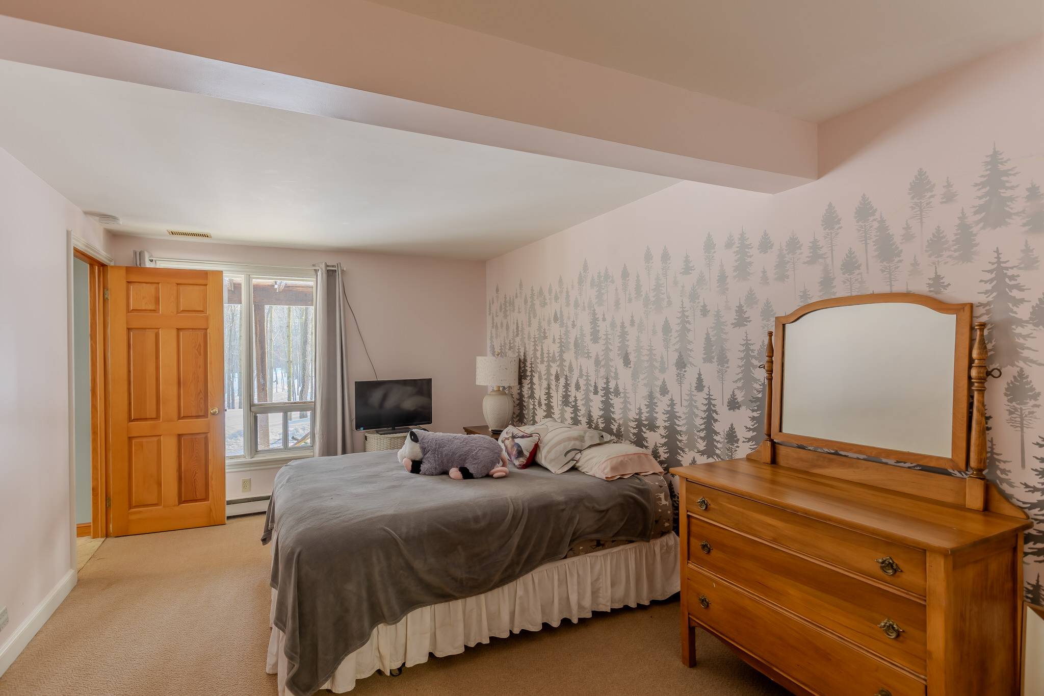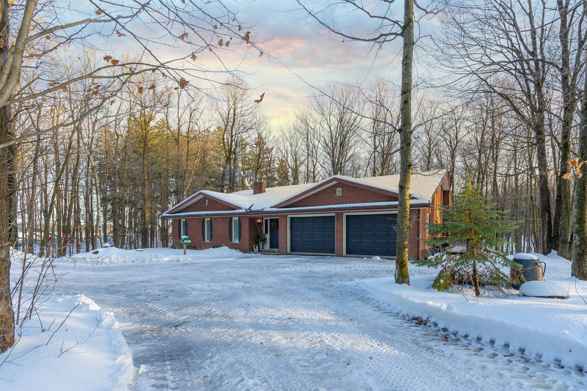 Tucked gracefully into the surrounding forest, the inviting bungalow offers approximately 3,700 square feet of finished living space. Designed for comfort and functionality, the home features a heated two-car garage, a wrap-around deck, and breathtaking natural views from nearly every room. The open-concept layout is perfectly suited for both everyday living and entertaining.